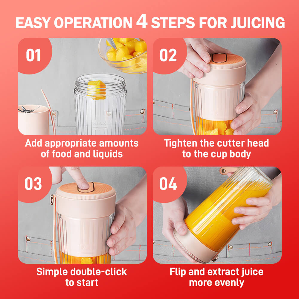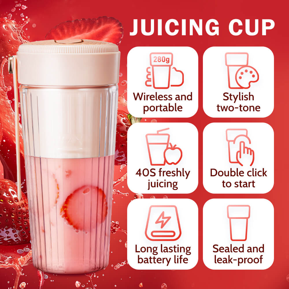 The 300ML Portable USB Rechargeable Blender is designed for convenient, single-serve blending wherever you go. It features a high-speed 12,000 RPM motor and a durable 6-leaf stainless steel blade, allowing you to blend fruits, vegetables, and soft ingredients into smooth drinks in about 40 seconds.