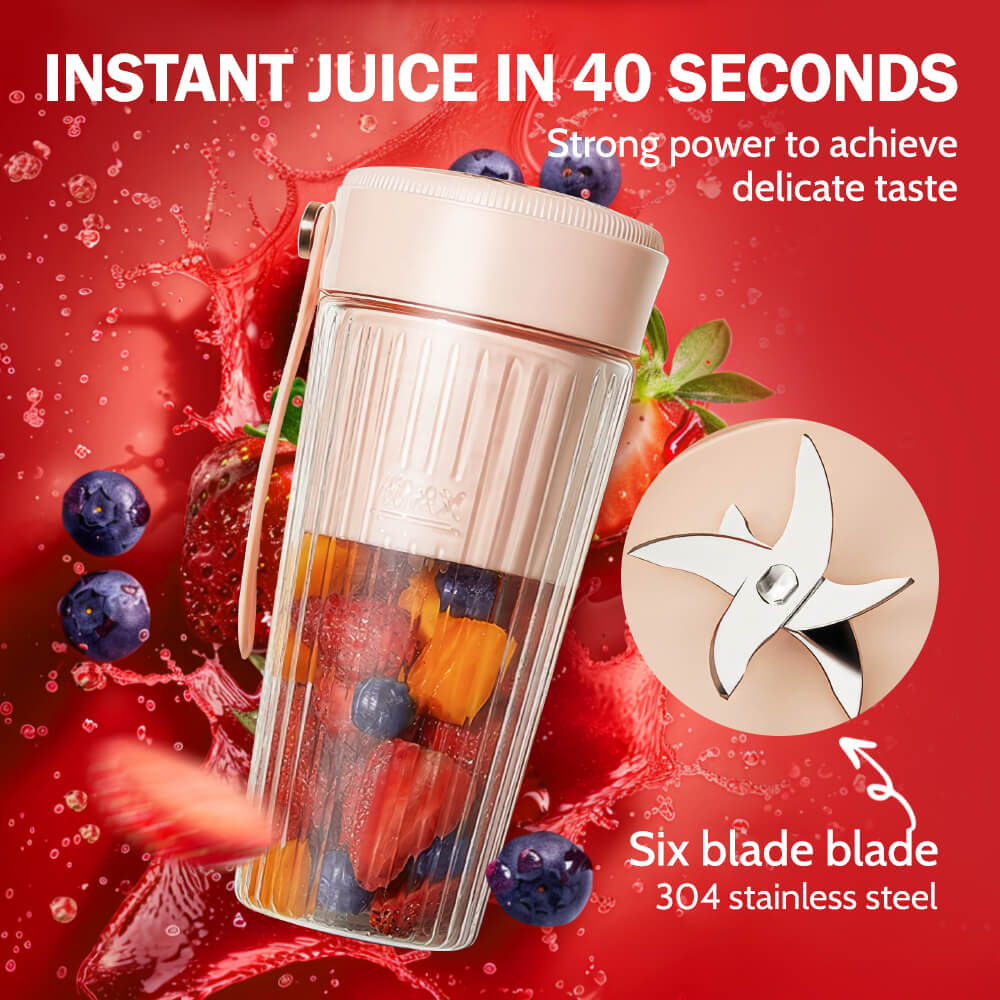 300ML Portable USB Rechargeable Blender with 6-Leaf Stainless Blade