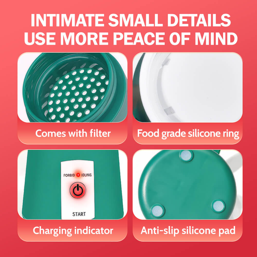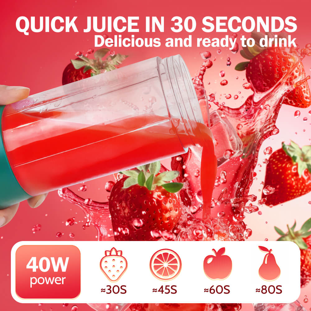 This portable blender combines speed, convenience, and safety, making it perfect for fresh drinks anytime, anywhere.