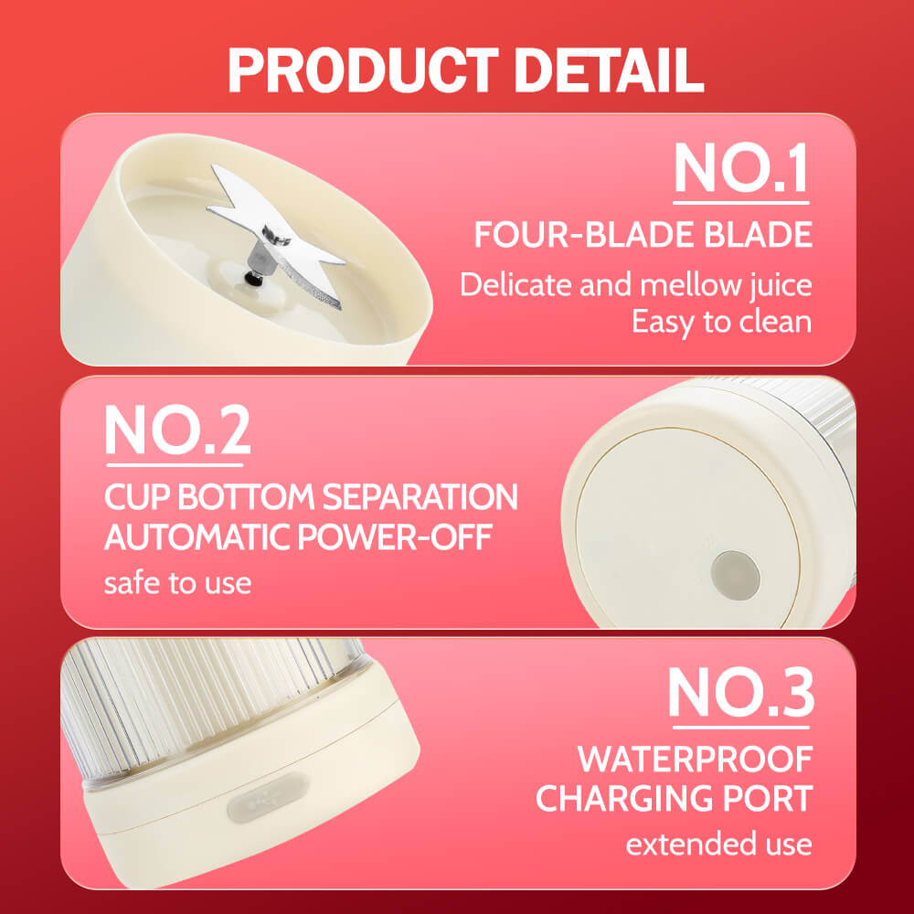 This compact portable blender combines speed, safety, and convenience, making it ideal for fresh drinks anytime, anywhere.
