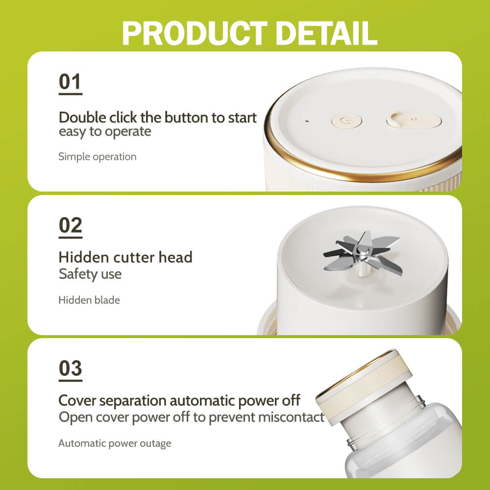 This portable blender combines power, portability, and convenience, making it the perfect tool to enjoy fresh, healthy drinks anytime, anywhere.