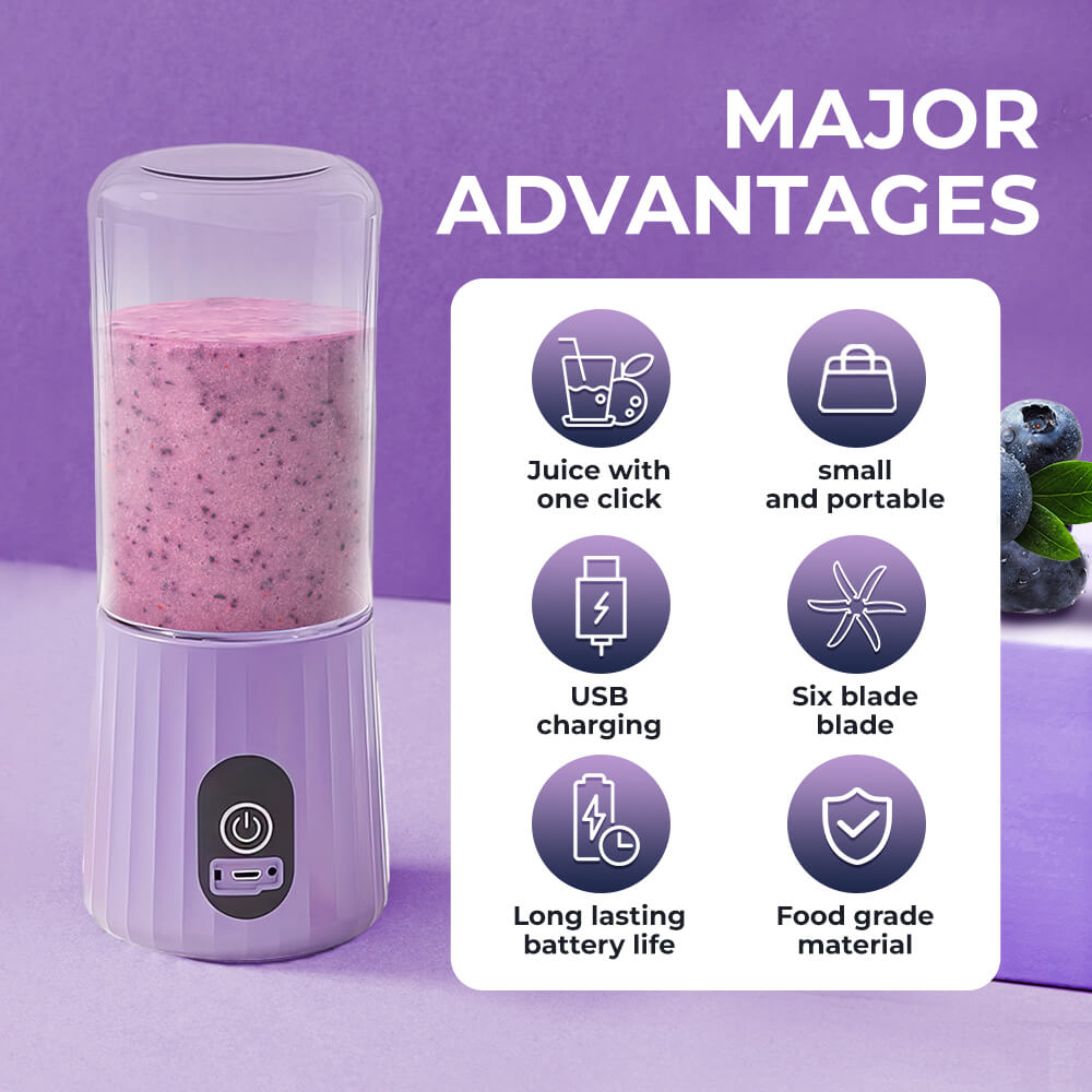 Portable 350 mL USB Blender Rechargeable 6-Blade Personal Smoothie Maker